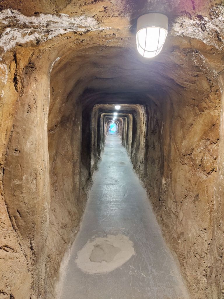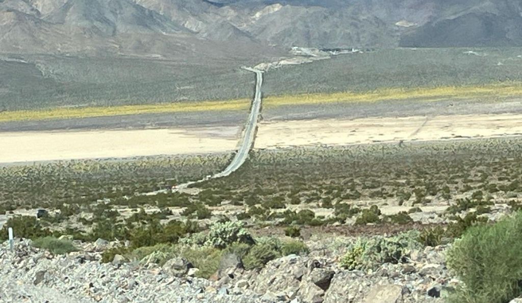 This was the tunnel from the hotel to the car park – it really was like The Great Escape. Would we escape the weather?? The drive through Death Valley, was far longer than we thought taking in once more the phenomenal mountain terrain.